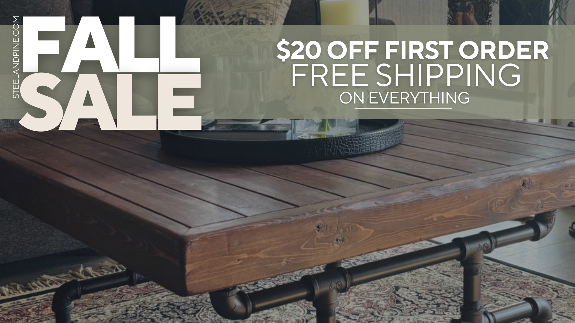 Steel and Pine Wood Coffee Table with Shelf Style 2