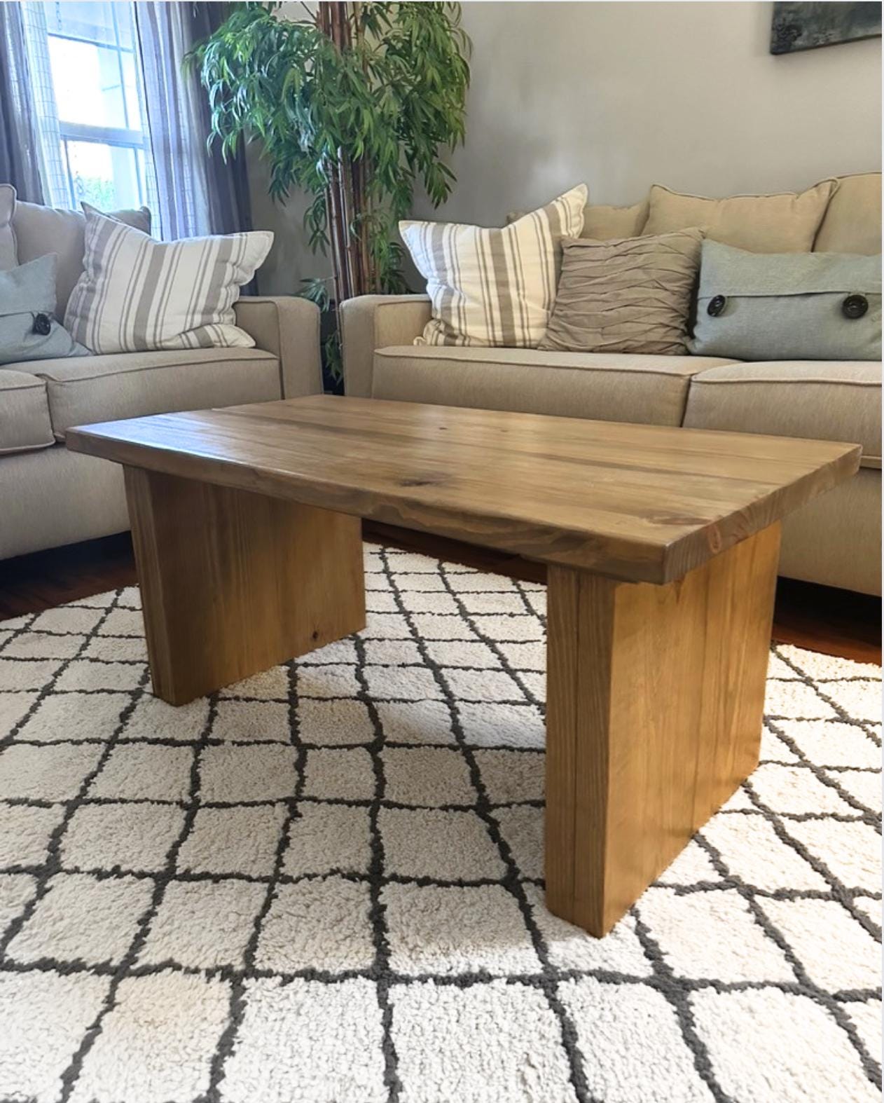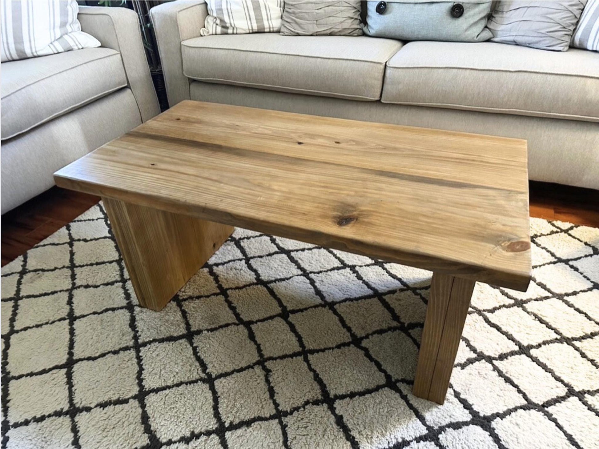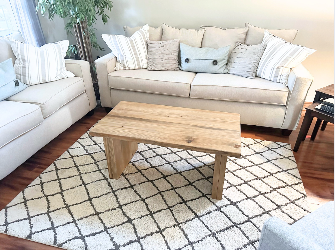 This modern coffee table is made of hand picked solid wood. We use premium hand selected wood planks because we love the strength of solid wood and the unique grain and textures of every board. Each piece we craft has its own story to tell!