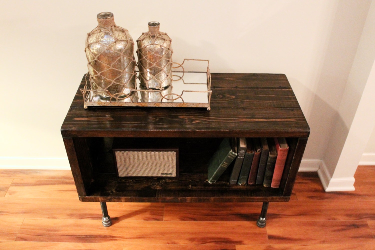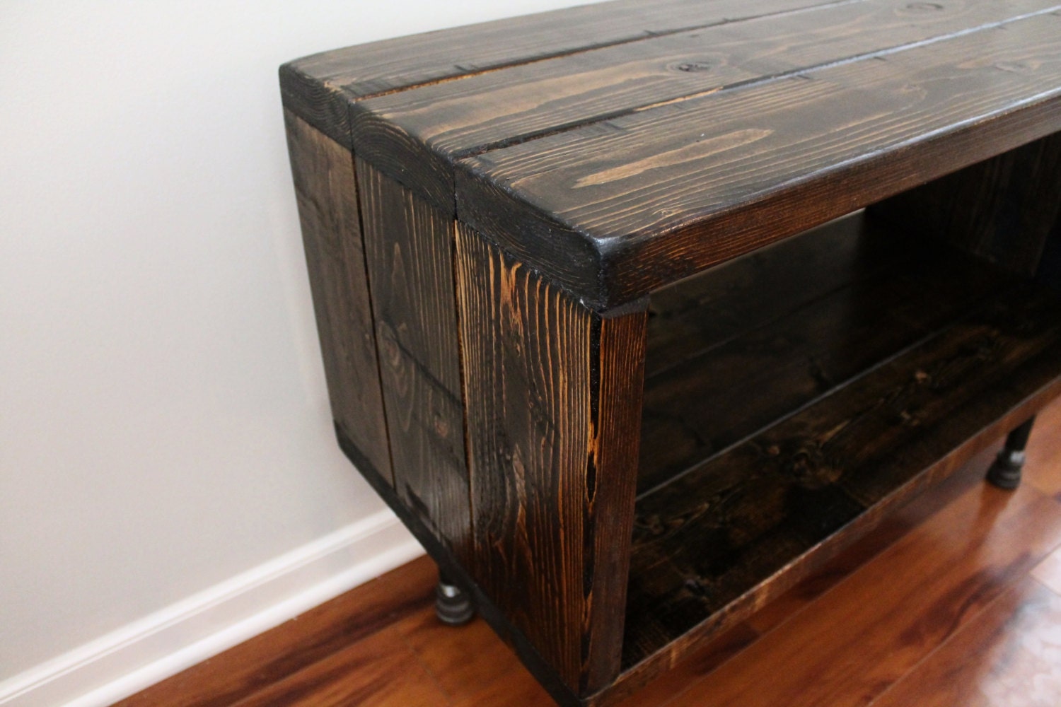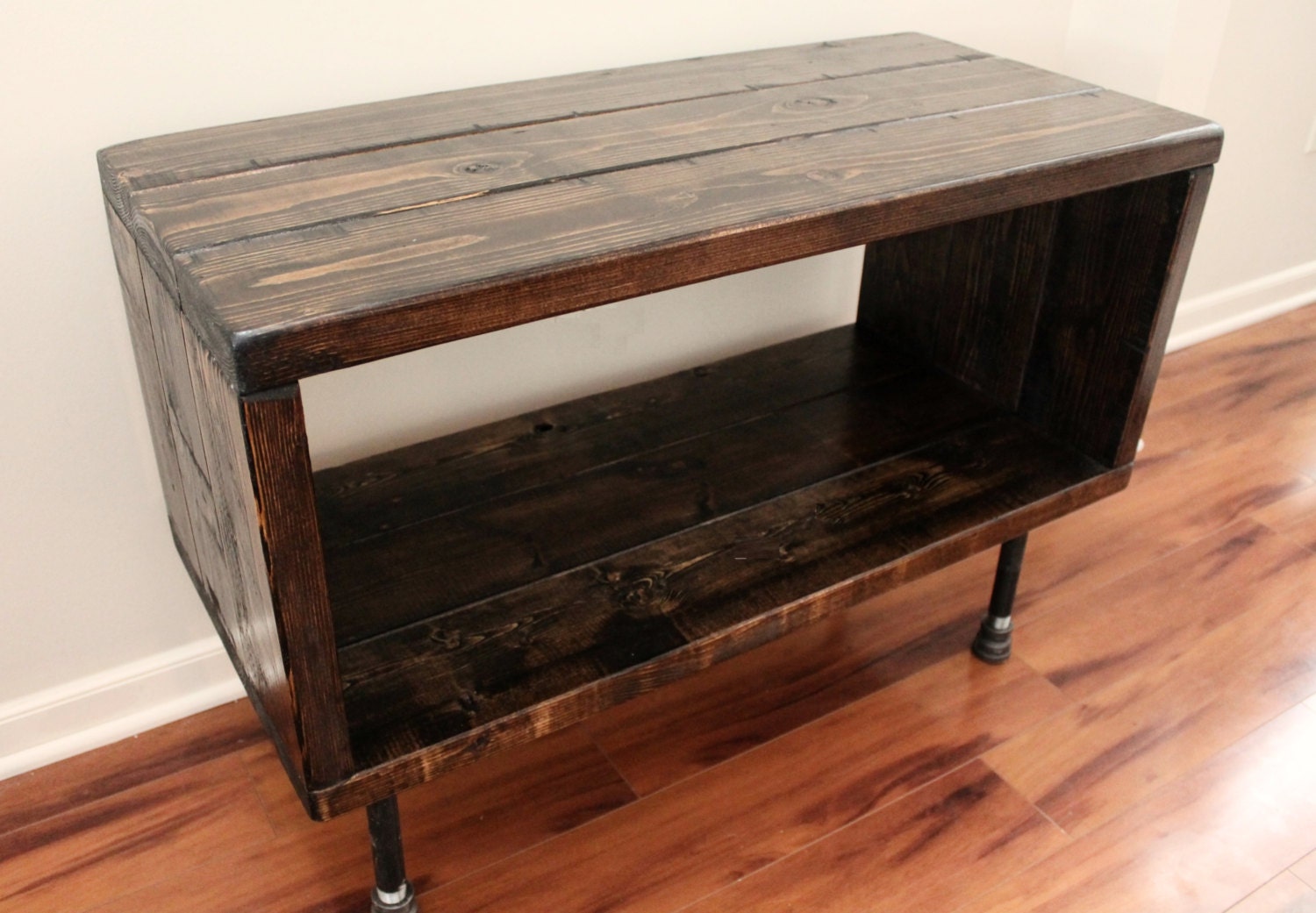 This rustic coffee table is made of hand picked Premium Pine wood. The table features a box design with lower shelf for storage, baskets, books, or any decor items that suit your style. The table shown is 36" x 16.5" and is 25" high with a Dark Walnut stain. Lower legs are 7 inches and the box table is 18". Feel free to contact us if you would like a custom size or stain.