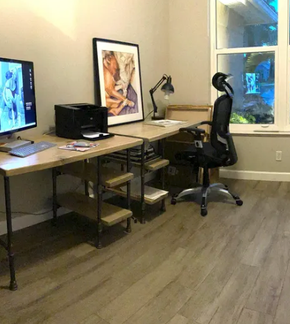 Customization - Double Shelf can be moved to left side. Shelves can be added to the left and right side for 4 total shelves. Can also be created as a standing desk. Contact us! We're happy to help!