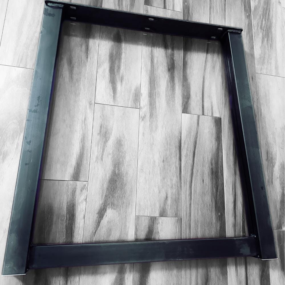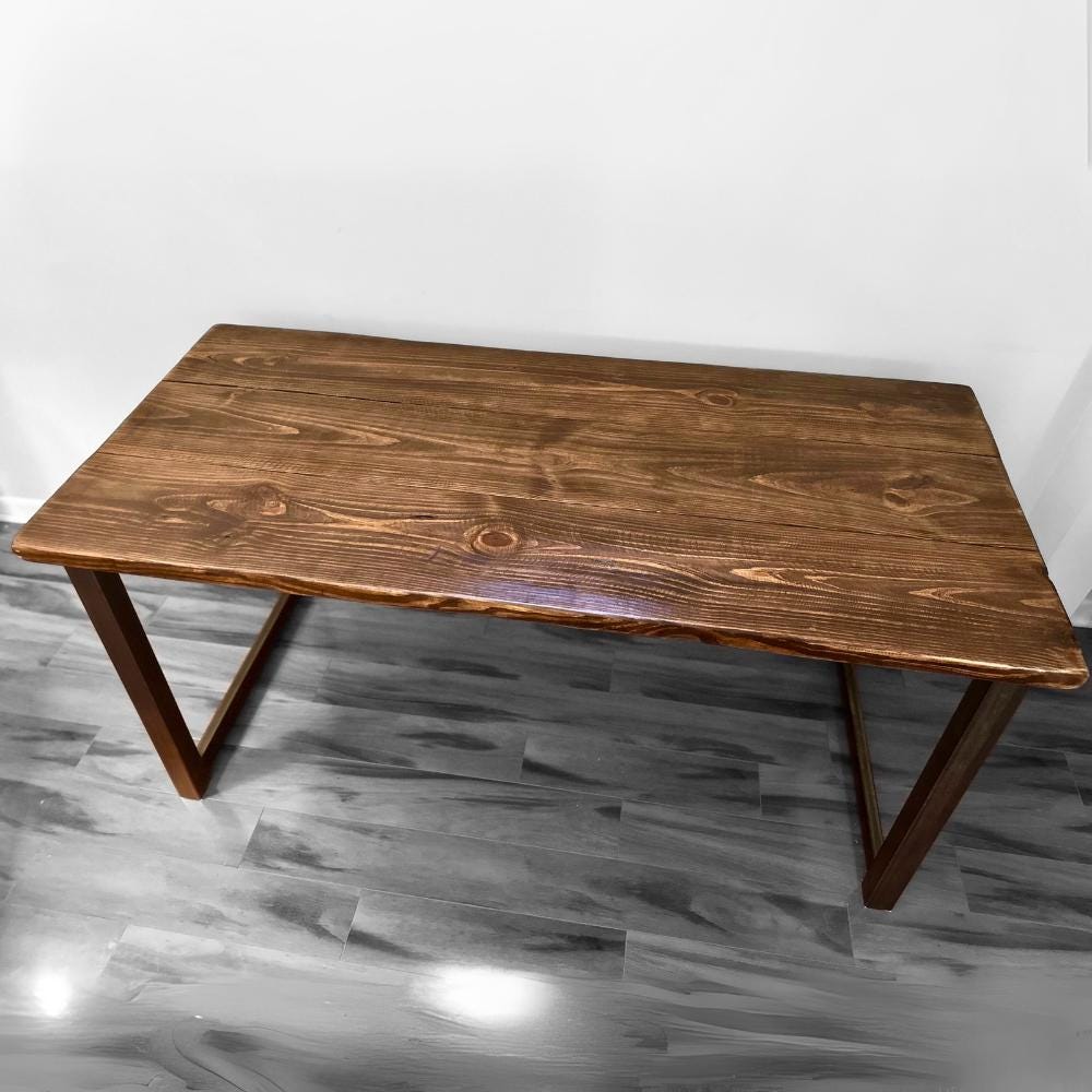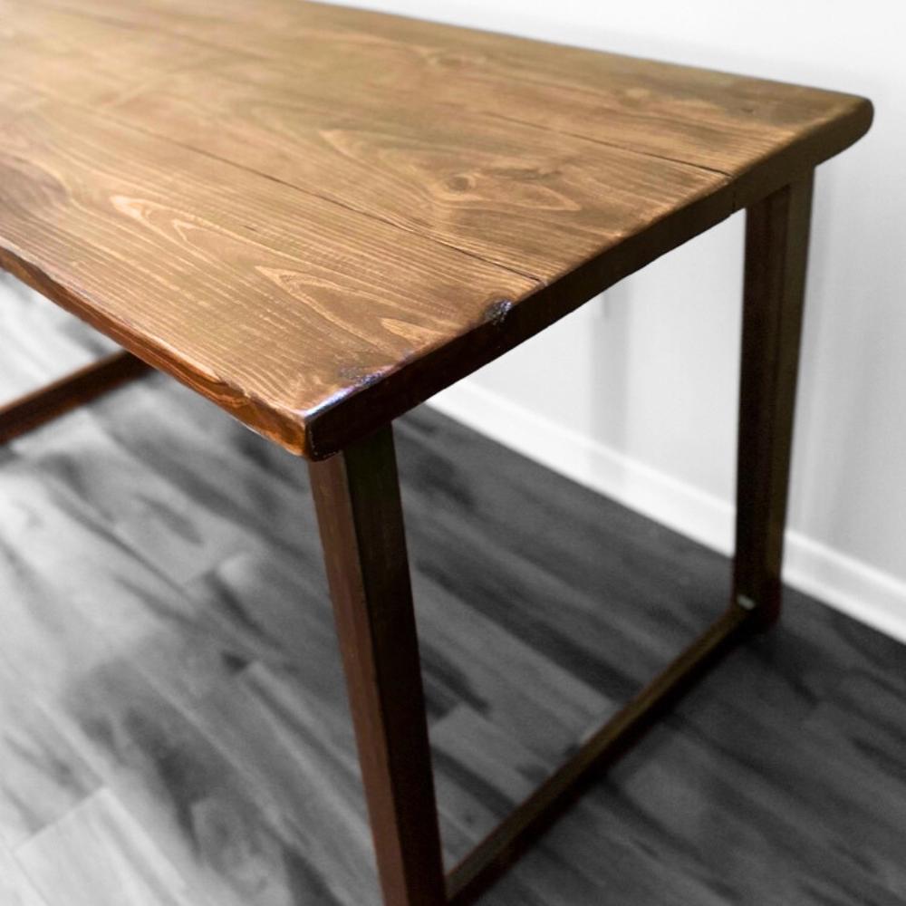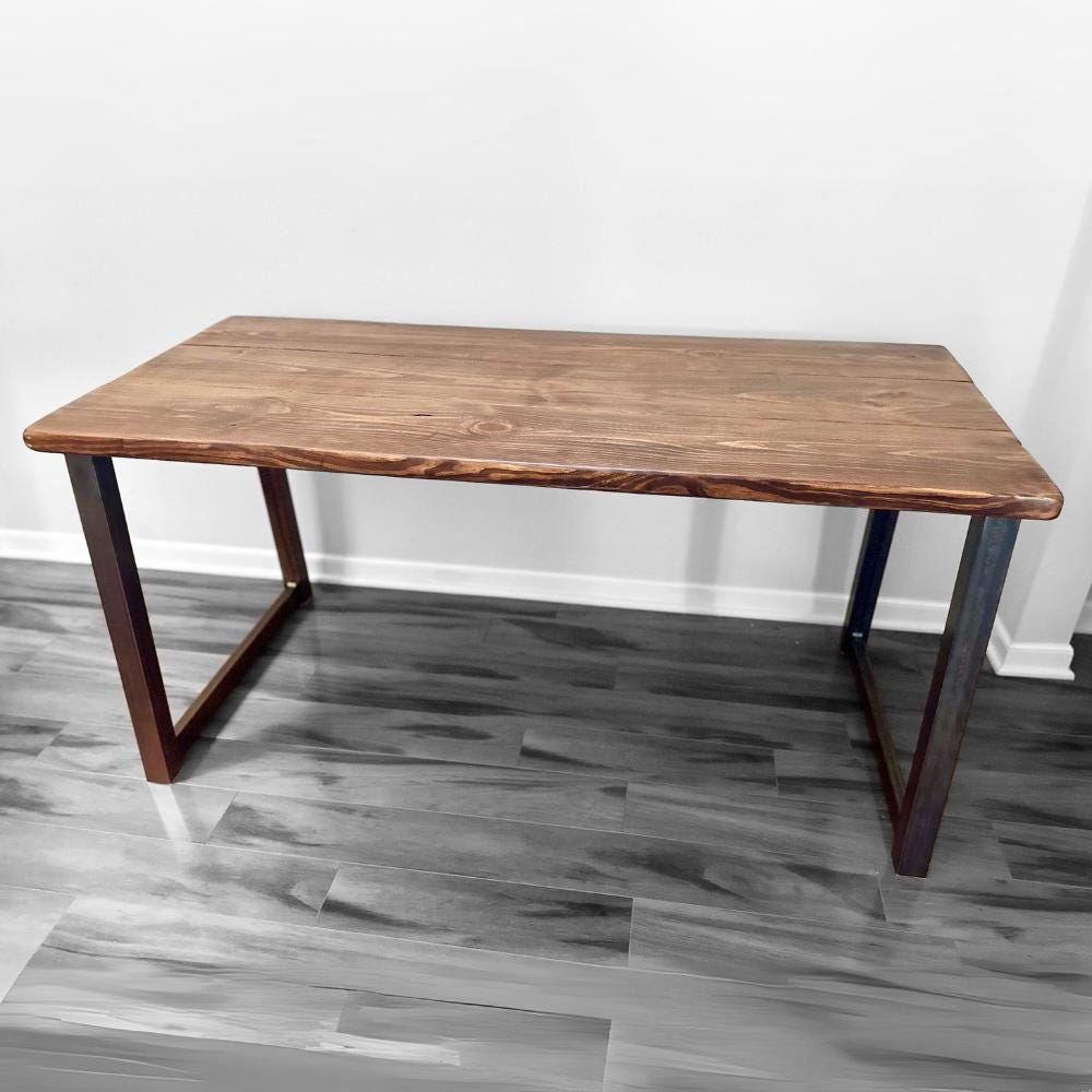 Desk is made of hand picked solid wood and raw thick steel square legs. Desk shown is 60" x 27.5" and 30" high. Wood stain shown is Dark Walnut. The square legs are locally welded and crafted using a high grade steel