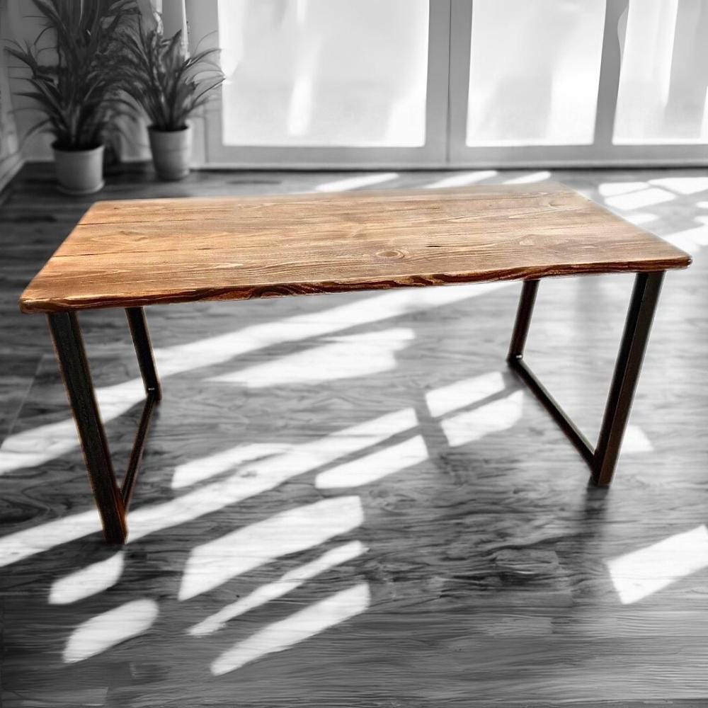Steel and Wood Desk - Square Leg Style - Trapezoid - Kitchen Table - Home Office - Industrial Style
