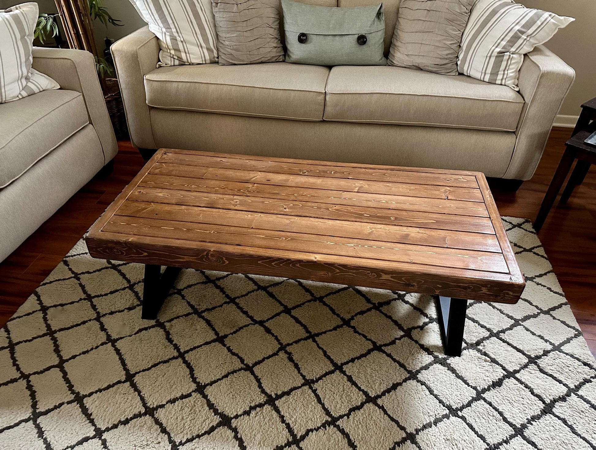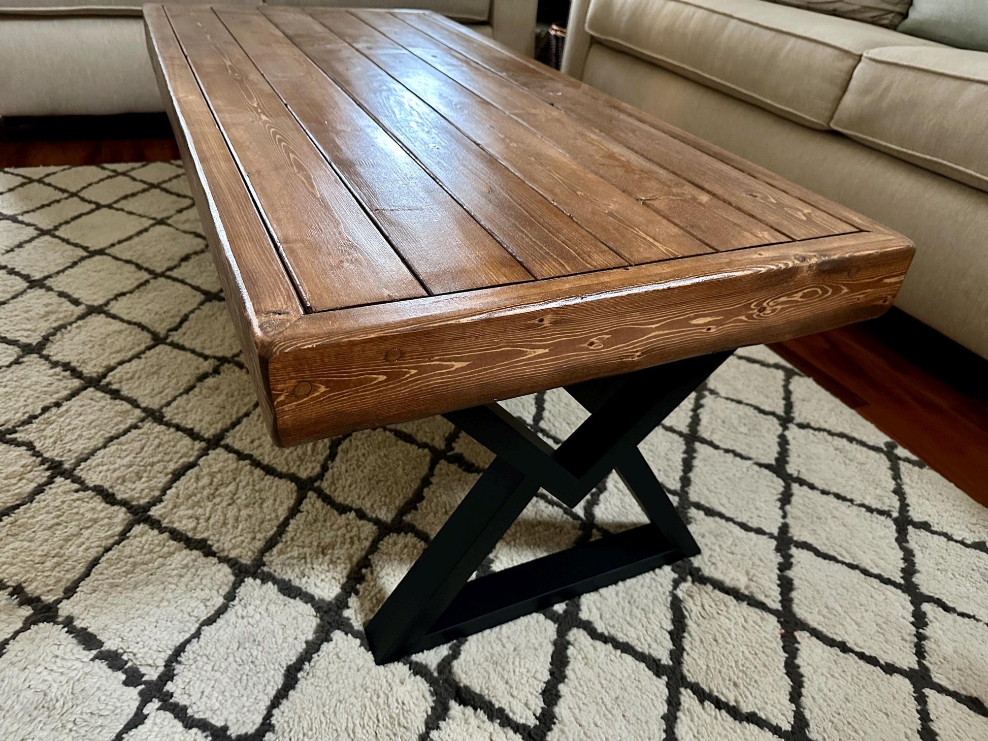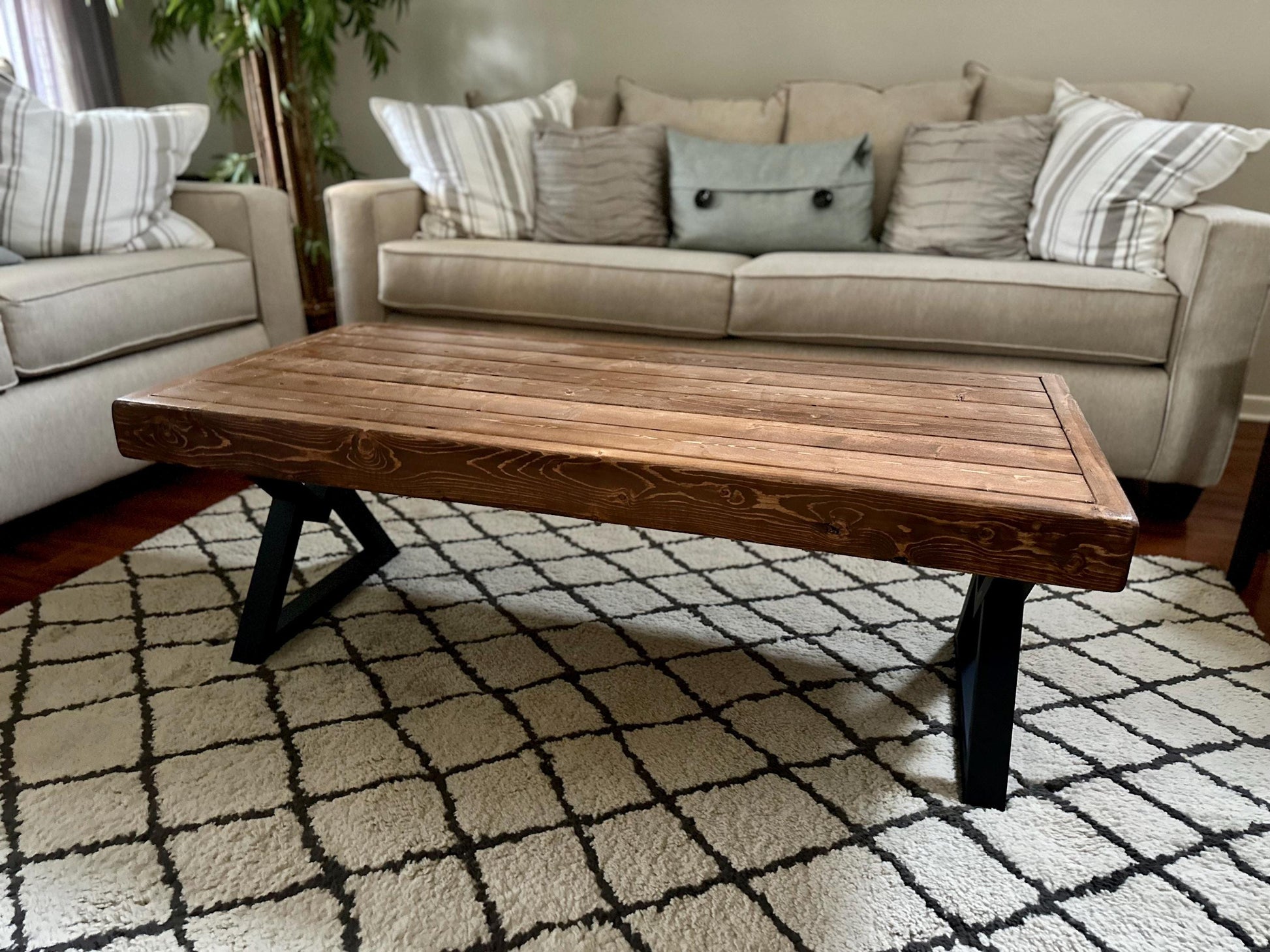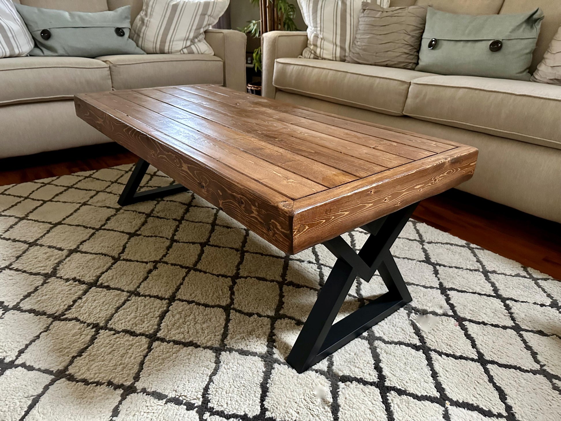 Steel and Wood Weathered Coffee Table - V Style Square Legs