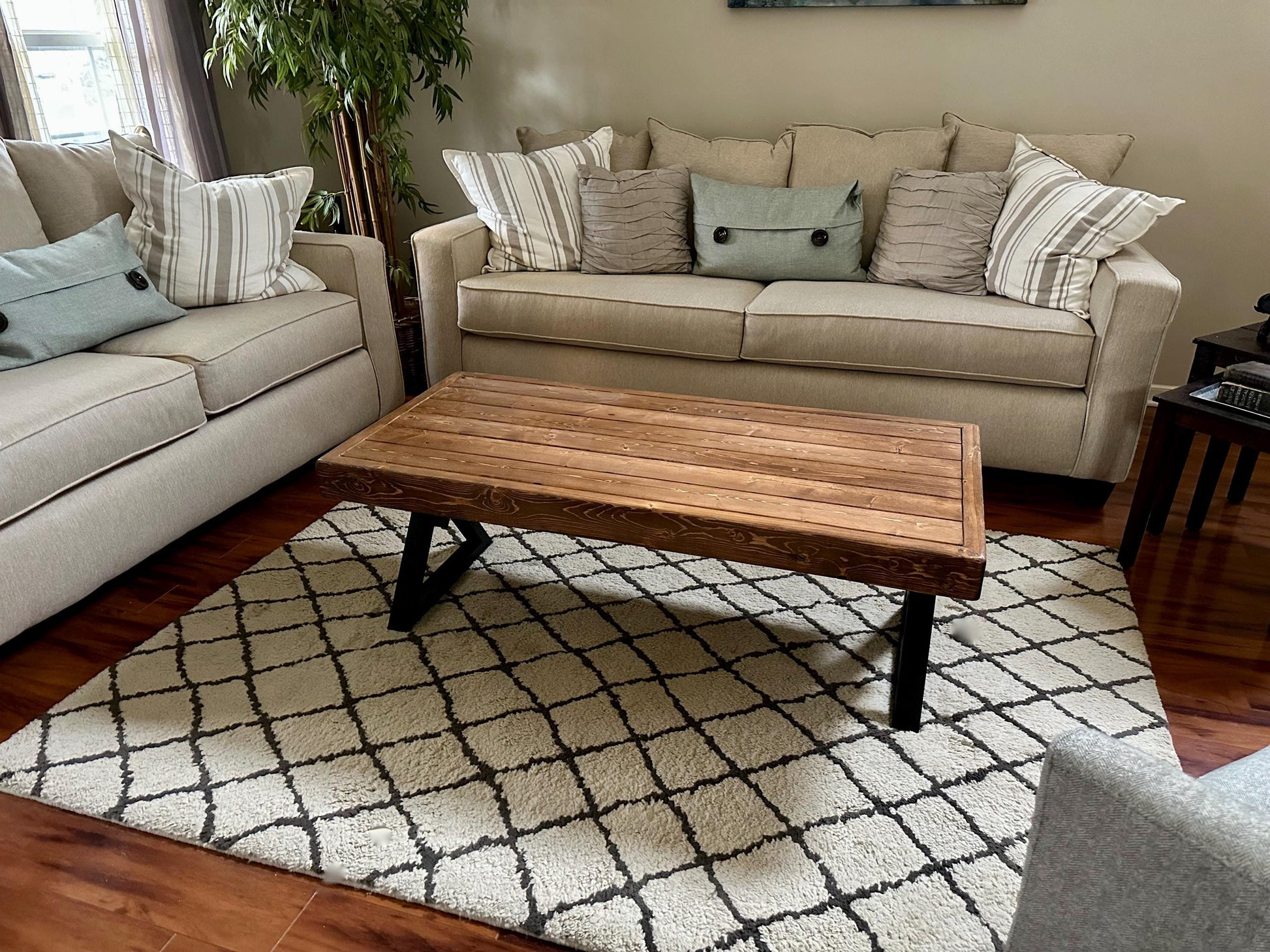 This weathered coffee table is made of hand picked pine wood and extra large black square steel legs. 100% Real Wood. Not imitation MDF particle board.